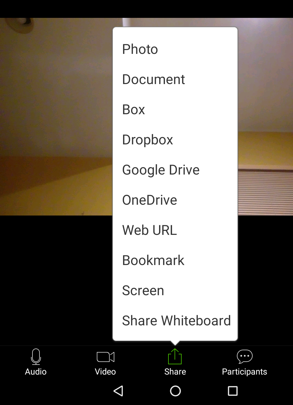 2. Select the content type you would like to share. To create a whiteboard, select "Whiteboard" at the bottom. The whole list: