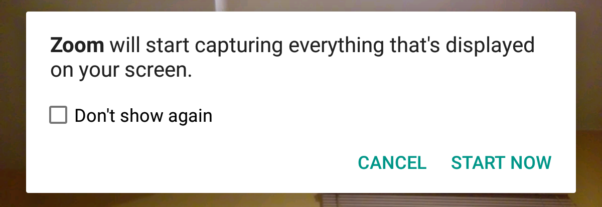 3a. If you select Screen, you'll see a prompt asking for permission to begin streaming your phone screen. Tap "Start Now" to allow it.