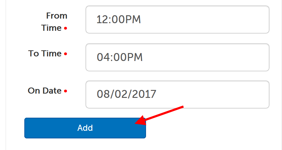 9. Click "Add" to add the out of office slots to your calendar. They will appear on the calendar in red and prevent any overlapping appointment slots from being viewable to users.