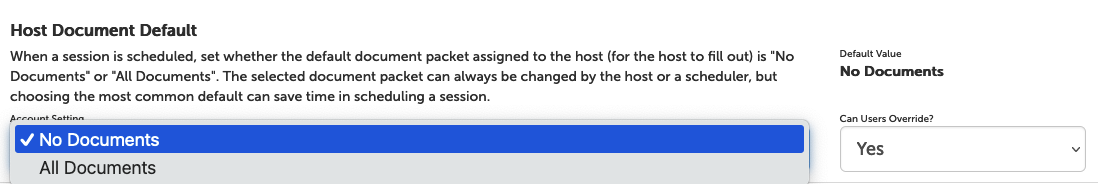 3b. To set the default packet assigned to hosts: Scroll to the option "Host Document Default" and click the drop down to select your default. The change will save automatically.