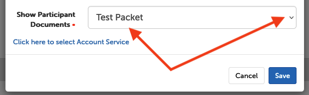 3a. To set the default packet assigned to participants: Scroll to the option "Participant Document Default" and click the drop down to select your default. The change will save automatically.